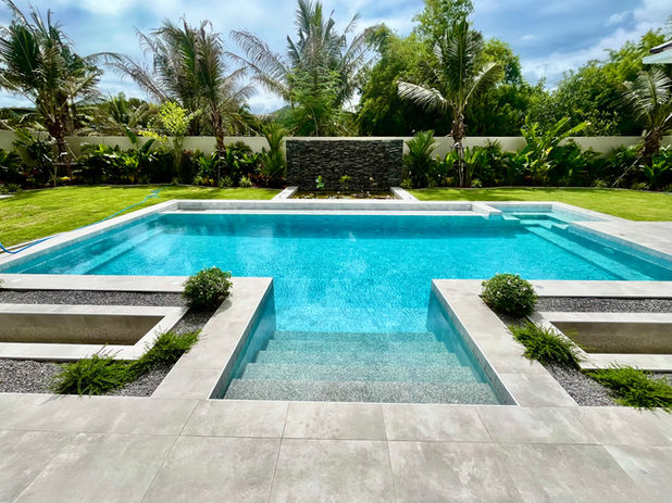 🏊 10 m langer Salzwasserpool mit separatem Jacuzzi & Wasserfall